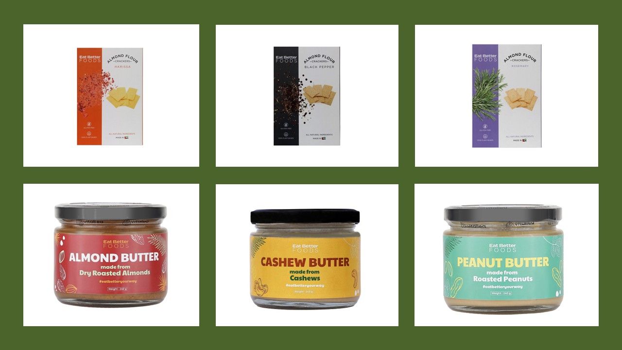 EAT BETTER FOODS - We create "Better for you", Plant-Based & Gluten-Free alternatives to your favorite foods. Our Vegan & Gluten-Free range of Wraps, Roasted Nut Butters and Crackers are one of its kind. Almond wraps are gluten-free, vegan, paleo, and grain-free alternatives to tortillas and breads. This raw flavor is made of raw almonds and is a great addition to your plant-based diet, or simply a better alternative! Almond Flour Crackers are 100% gluten-free and plant-based. They make a great alternative to traditional crackers and are made of 100% all-natural ingredients. They go well with cheese, almond butter, or as a stand-alone snack.