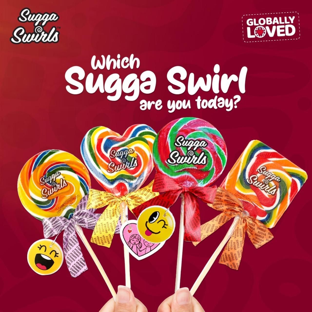 SUGGA WIRL - Just look at those vibrant colours! Our lollipops will give you a major throwback to your childhood memories. Take a look at our vibrant colours! Sweet, piquant taste with fruity notes will bring so much pleasure and satisfaction. This is a perfect treat for your little one or a great experience to share! Our lollipops never fail to impress. Fun, Colorful & Allergen-Free! Add a burst of color and sweetness to your pick & mix selection with Sugga Swirls! These large, vibrant lollipops are as eye-catching as they are delicious – perfect for kids and grown-ups alike.